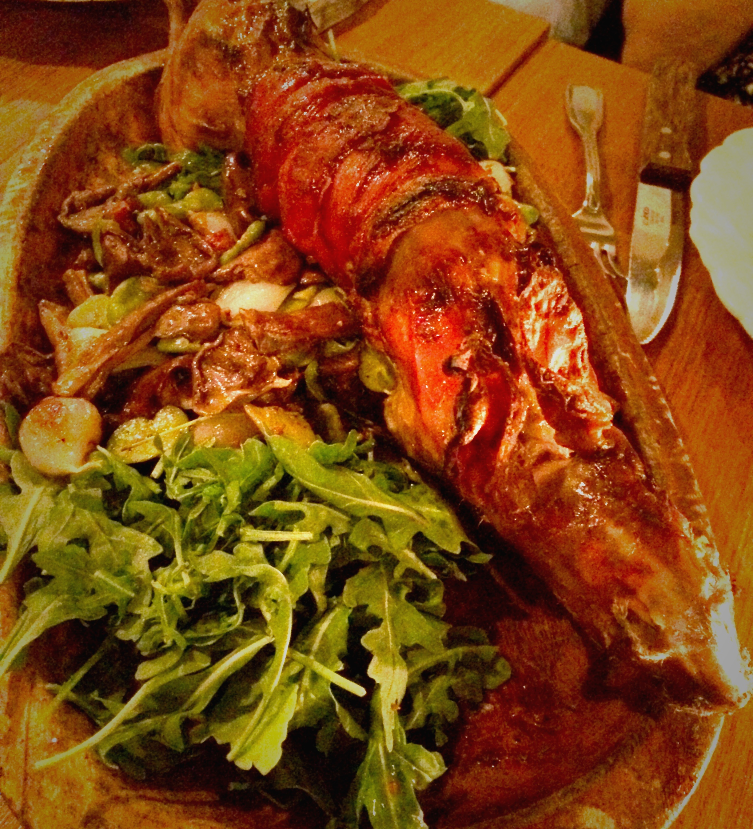 But the money on the table has to be the whole-roasted Rabbit. Although not on the menu, (my hunch says it will be very soon) the leporid is heartily stuffed with rosemary, (clearly chef DeCarlo’s favorite go-to herb) and then tightly wrapped in guanciale (pork jowels) which caramelize around the skin forming a smoky, salty and incredibly fragrant aroma. I realize that the thought of a rabbit stuck between the cheeks of a pig might put one over the edge, but the combination of these two worlds on one plate is utterly delicious and completely unforgettable.
