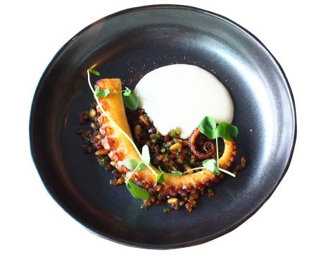 I couldn’t help feeling a little sorry for the lonely tentacle of the Octopus with just a few crunchy crumbs of pork infused XO-sauce on the plate, until our server whipped out a red siphon and discharged a handsome mound of beige foam right beside it. “Brown butter and potato espuma”, he declared. Not quite what I was expecting to keep an octopus company, but after tasting the combination of the crispy tentacles with a sweet center, flavored by the umami-rich sauce and velvety, buttery foam, he could have discharged some onto my snow boots and I would have happily lapped it up.