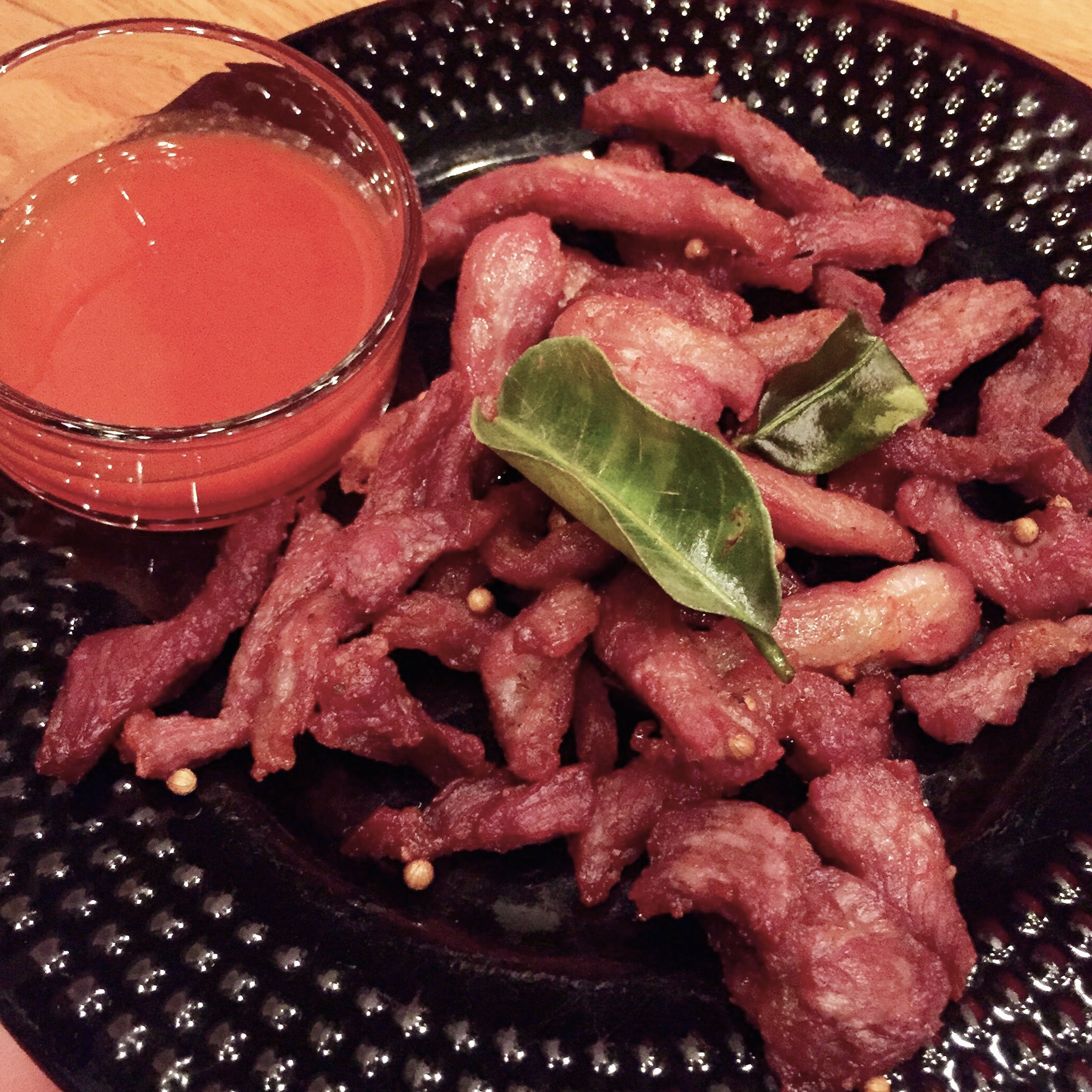Working clockwise from where I sat, there was the wondrously crunchy Deep-Fried Chicken Thigh with a blond dusting of indulgently fried garlic served with a lime, chili and fish sauce dip.
