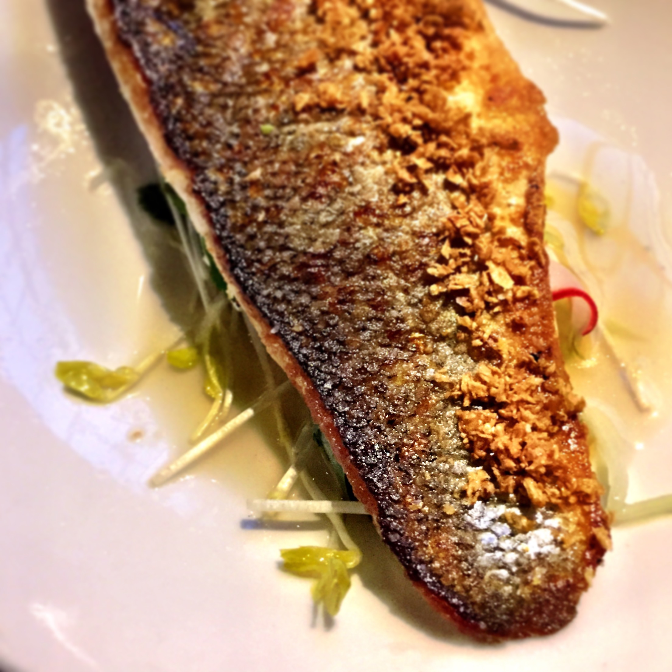 My dinner guest and I debated between a couple of the half-dozen desserts, and in retrospect I probably should have put my foot down for the Coconut Milk Tapioca with blueberry compote. But instead we settled on a New York style Cheesecake. The perfectly ornate presentation included a couple of figs and a heavenly morsel of pine-nut brittle. But the silver dollar sized dollop of chalky nut-cheese fluff had a little trouble standing up to its big apple namesake. I would either recommend a renaming to lower expectations, or perhaps the insertion of a distracting flavor-forward ingredient like a hazelnut or poppy seed puree…