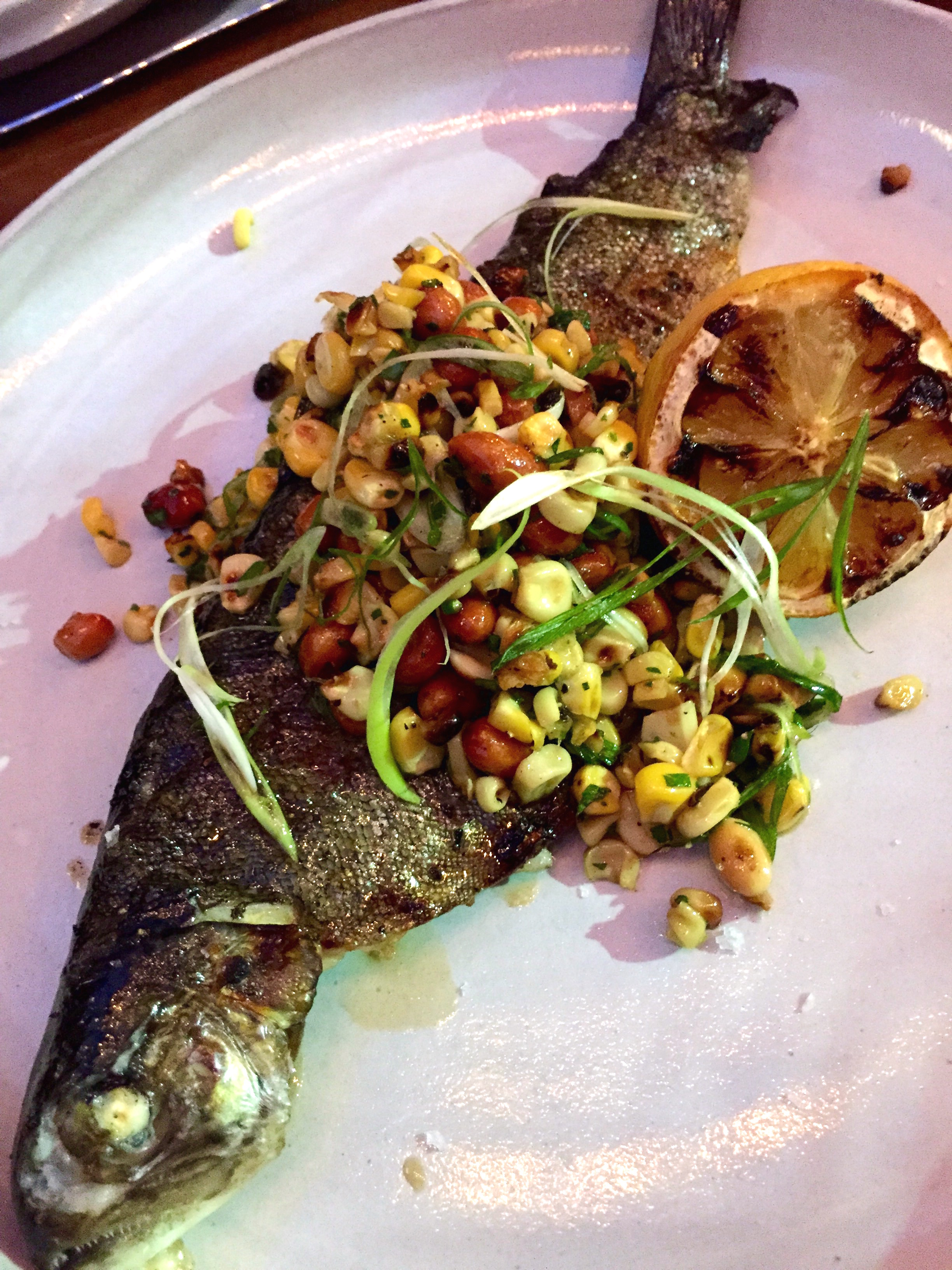 For no other reason than the plethora of appetite-competitive options, we skipped over the gazpacho’s, lentil bread, pickles, olives and pizzas and started with a vibrantly refreshing Watercress and Peach Salad made with a wonderfully tart mint vinaigrette, dotted with dark, miniature hazelnuts.